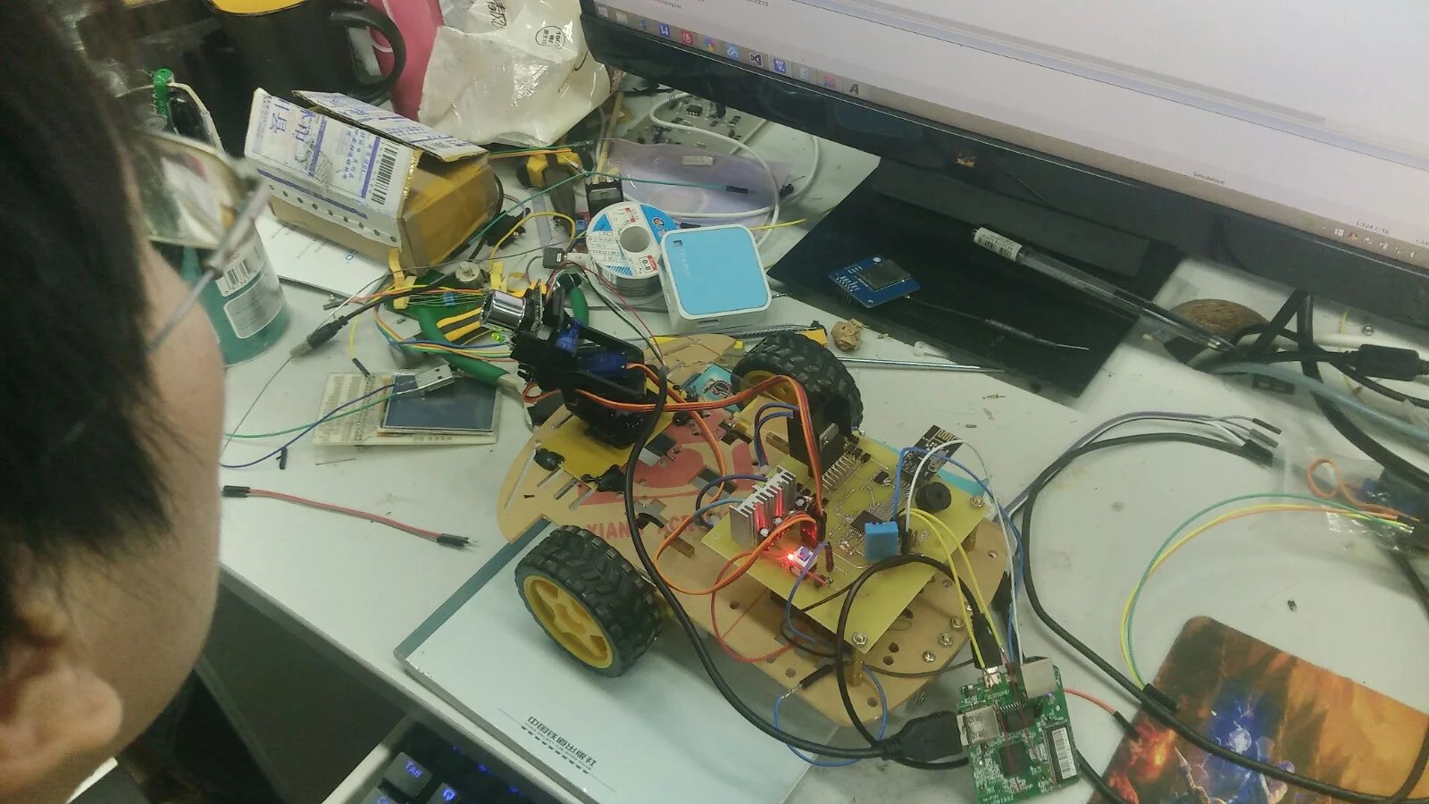 在电脑上通过WiFi控制智能小车行进,和云台。小车上的摄像头实时回传图像到电脑,还可以拍照,就像玩赛车游戏一样有趣。
