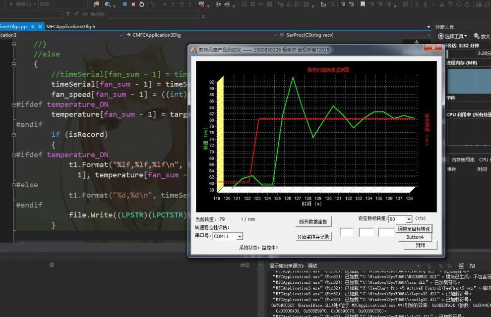 PID算法,迅速稳定风扇转速。同时在电脑上可以通过软件,对风扇转速绘图显示,也能在电脑上动态调整参数,便于体会不同参数带来的PID效果