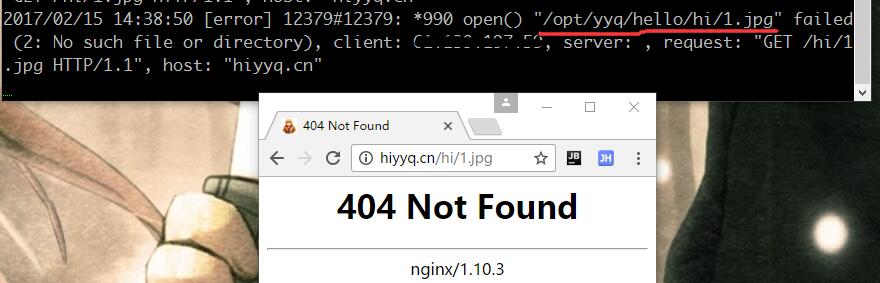 我们可以在错误日志上很清楚地看到路径被神奇地写成了/opt/yyq/hello/hi/1.jpg