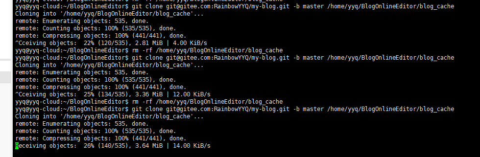 记一次腾讯云上git clone Gitee代码仓慢的问题 收录于 大锅炖 2022-06-12 约 211 字 预计阅读 1 分钟 目录 注意 本文最后更新于 2022-06-12,文中内容可能已过时。 摘要 刷新DNS记录可能可以解决 如图所示,在我个人的腾讯云机子上下载gitee的代码仓近10多KB/s,这谁受得了,本来把代码仓从GitHub迁移到Gitee就是图个下载速度。 首先排查了ping,时延还可以。 在腾讯云自助检测了一下机子带宽,速度也还可以。排除腾讯云的问题。 在自己个人电脑测试了一下,速度也还可以,排除Gitee服务器的问题。 那可能的问题我猜想可能是连错线路了,尝试刷新DNS记录缓存: 1 sudo rndc flush 下载速度恢复正常